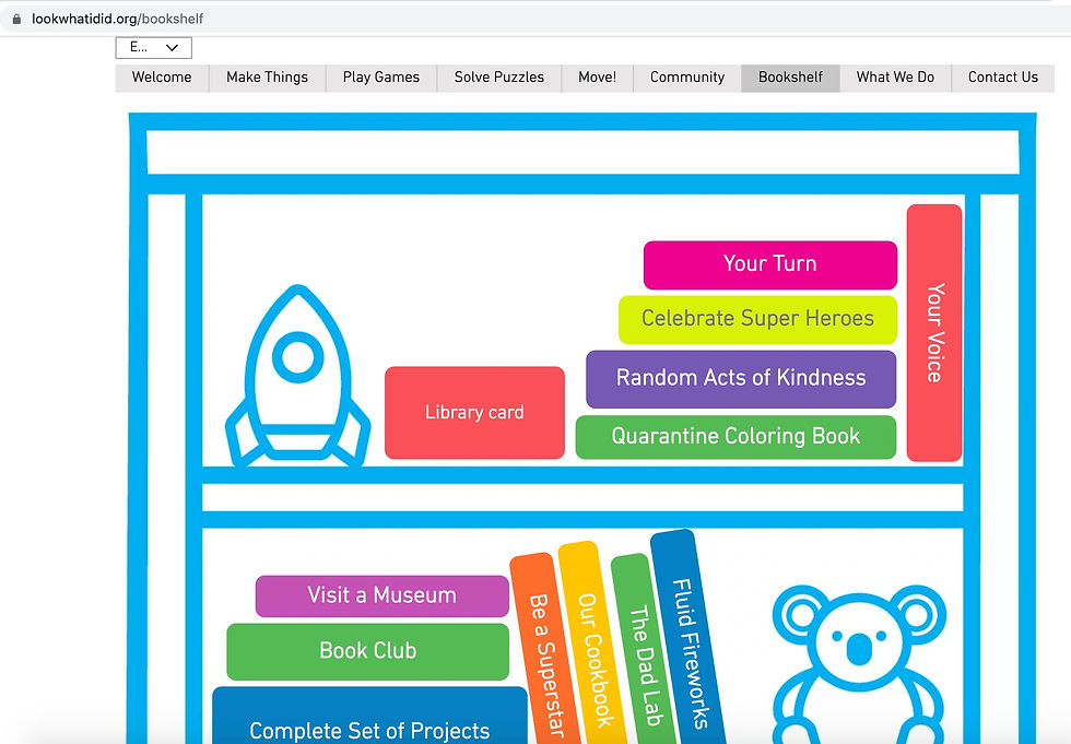 LookWhatIDid.org provides projects that engage kids (& adults!) in creative problem-solving and artistic expression. Their projects are distributed in the form of physical kits (where computers access is limited) and online around the world.